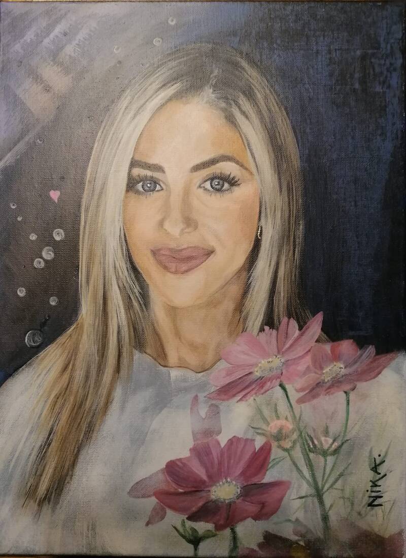 Roxana opdracht. Acryl Portret. 40x50 canvas. (Verkocht)